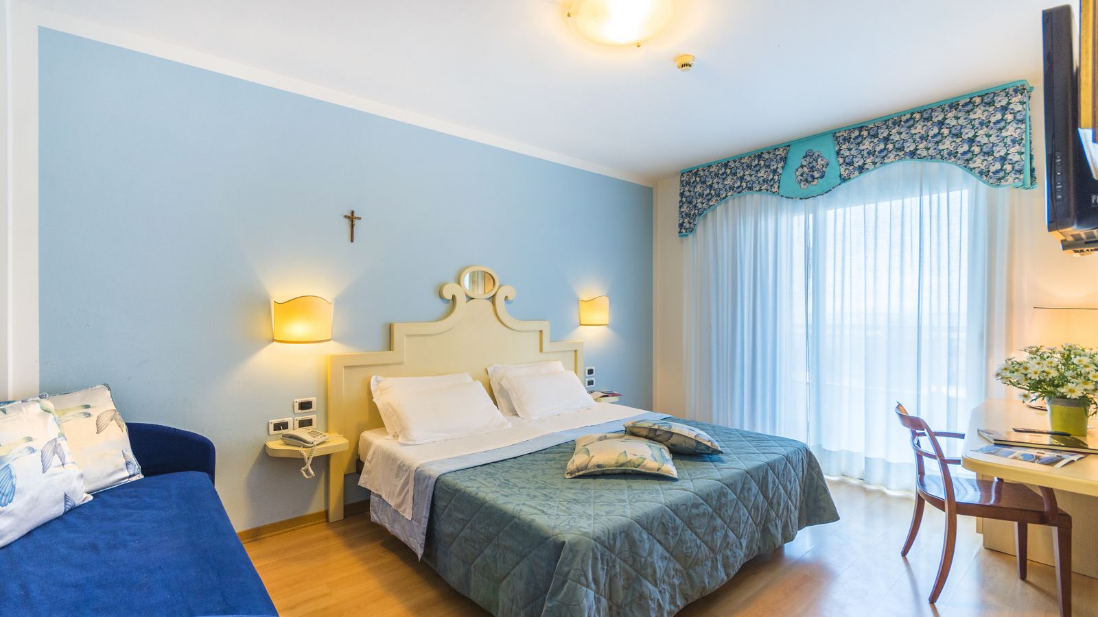 Das Standardzimmer ist komfortabel und verfuegt ueber Klima, Sat-Tv LED LCD Philips 32", Digitalsafe, Minibar, Telefon, Phoen, Badezimmer und Balkon. Dies damit Sie Ihre Ferien im kompletten Relax verbringen koennen.
